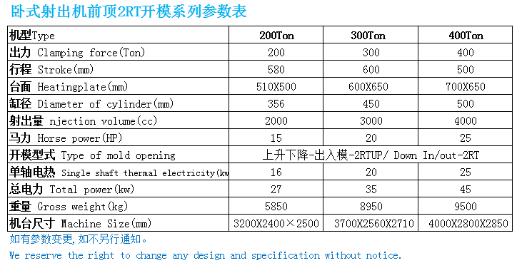 臥式橡膠射出2RT開模系列